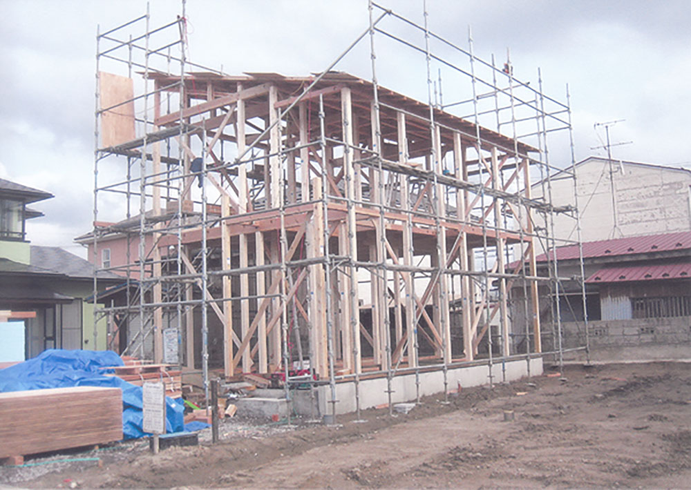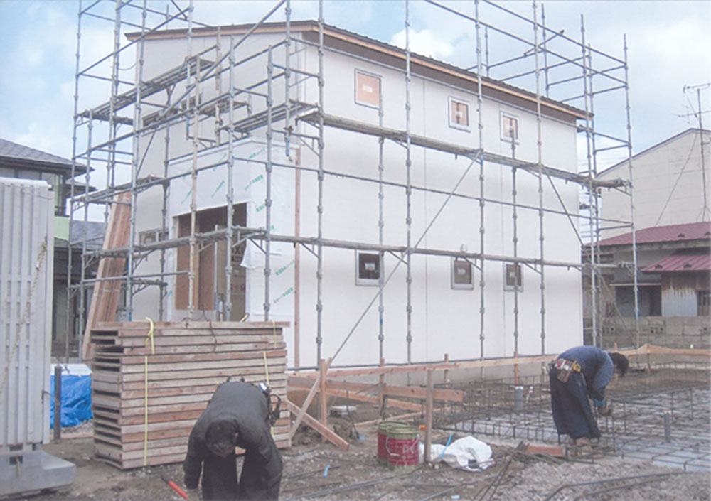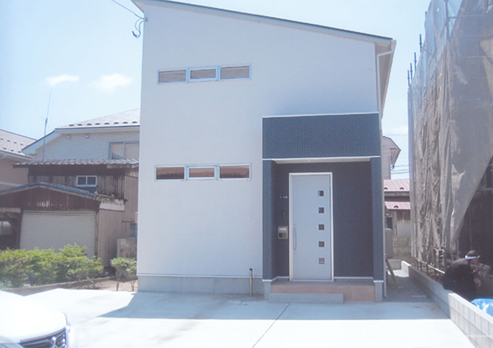当社扱いの宅地を購入したいとの話が会社経営の社長からあり、打合せしたところ、娘さんとその子どもの2人住まいの住宅を設計してとのお話でした。 実際に住む娘さん、ご両親と何回かプランの打合せをし完成させた注文住宅です。 外構工事を含めた総合プロデュースをさせて頂きました。