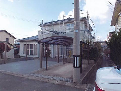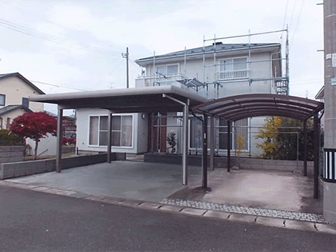 当社で売却依頼をお受けしていた築15年の2×4(ツーバイフォー)工法の中古住宅を26年6月に結婚されたばかりのS様ご夫婦にご購入頂きました。 購入前は車1台分のカーポートスペースだけでしたが、車を3台置けるようにしたいことと屋根、外壁の全面塗装もやりたいとのご希望でした。 幸い土地面積が86坪と広く、庭の一部を撤去し、もう2台分のカーバルコニーを新設する工事と塗装工事を引越前に当社で施工させて頂きました。