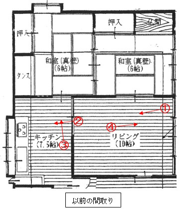 ①リビングからキッチン